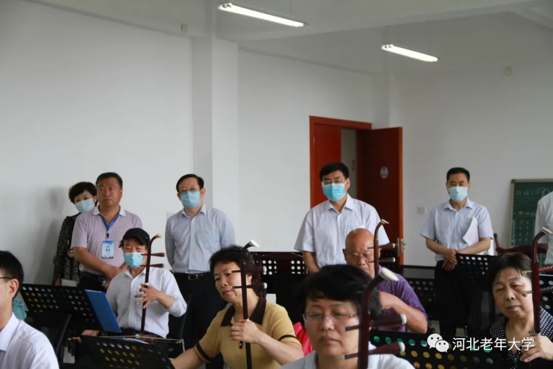 王红勇一行沿着学校下沉广场栈道边走边看,对我校幽静雅致的校园环境赞不绝口。在教学楼,一行人依次参观了声乐班、书法班、舞蹈班、器乐班现场教学,观看了部分学员的精彩教学展示。优雅安静的校园环境、丰富多彩的课程和学员们精彩的展示表演给调研组留下了深刻印象,展示了河北老年教育的成绩与风采。